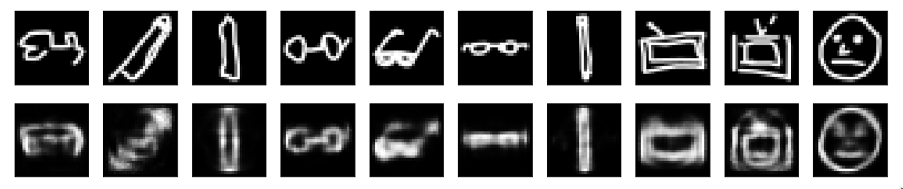 The next thing is to go have fun with it. I used this dataset in place of MNIST for some work playing around with autoencoders in Python from the Keras tutorials. The below picture represents the original images at the top and reconstructed ones at the bottom, using an autoencoder.