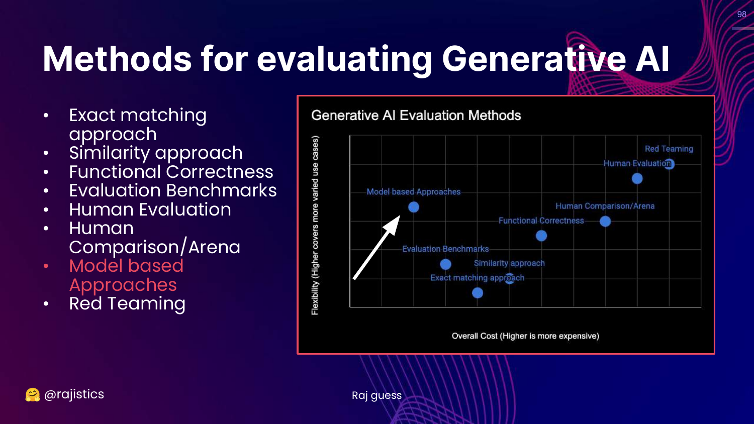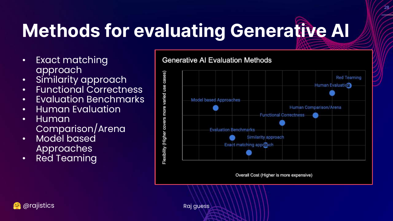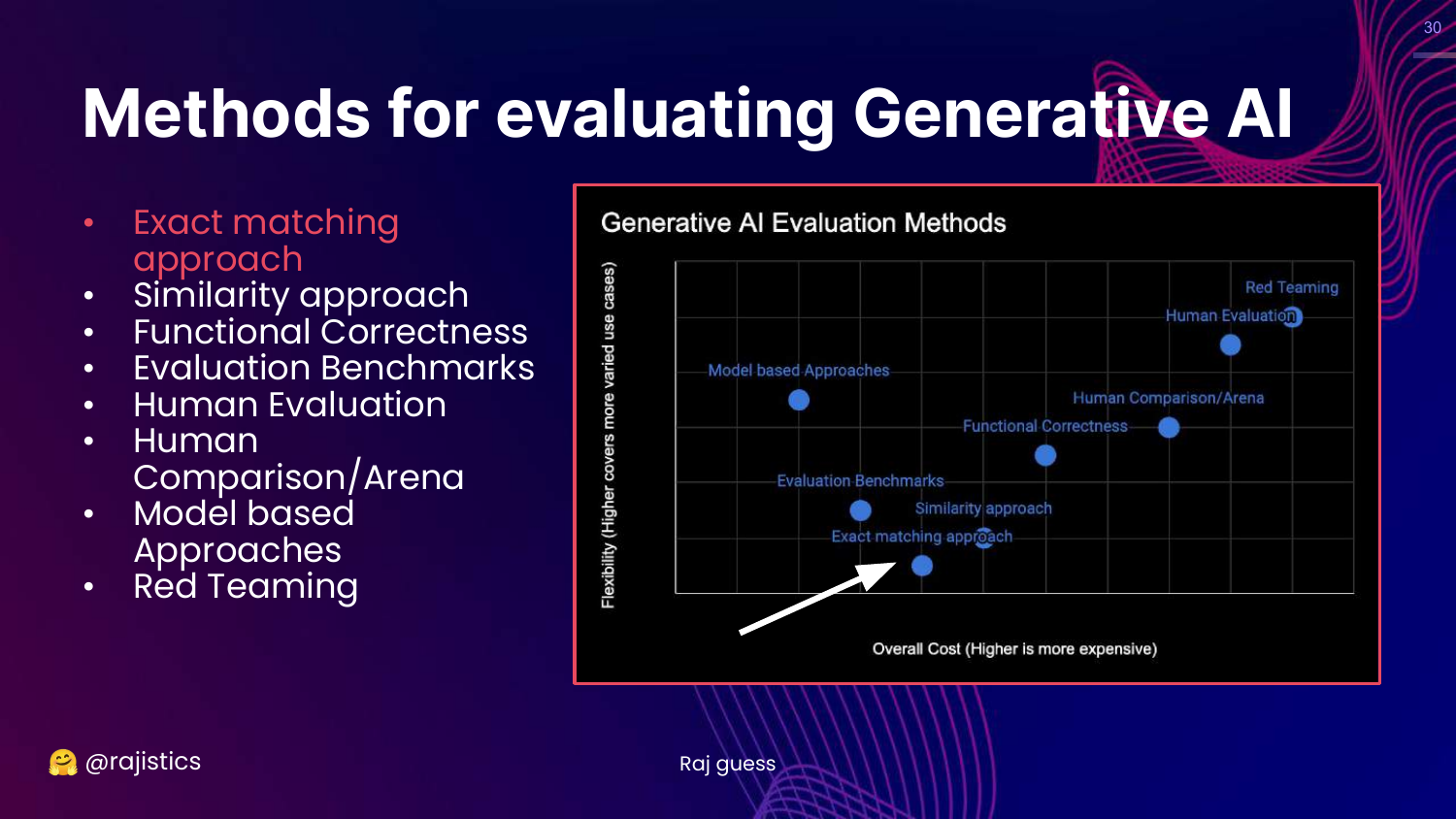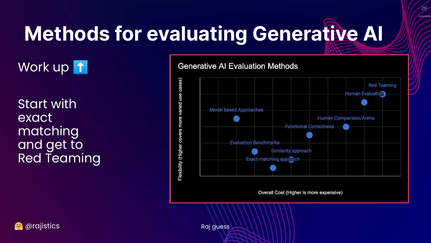 Rajiv concludes the technical section, having covered the spectrum from Exact Match to Red Teaming.