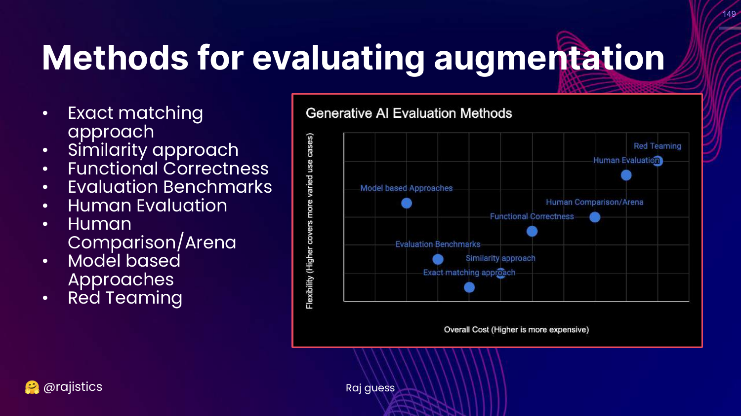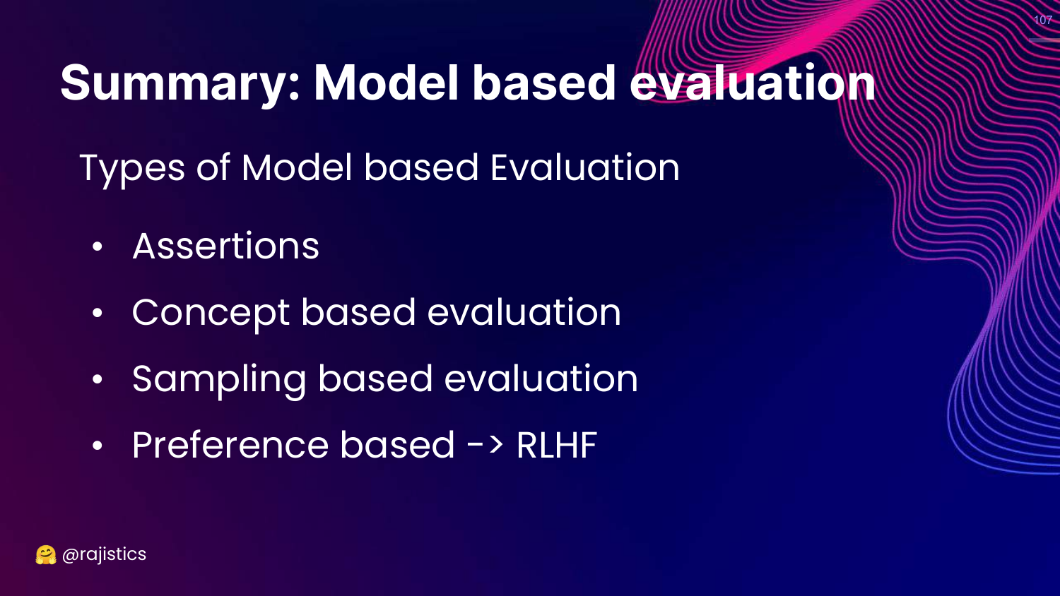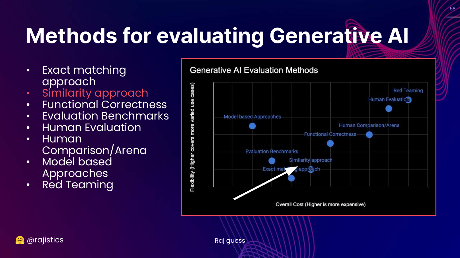 Rajiv concludes the technical section, having covered the spectrum from Exact Match to Red Teaming.