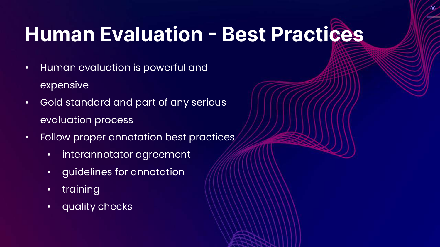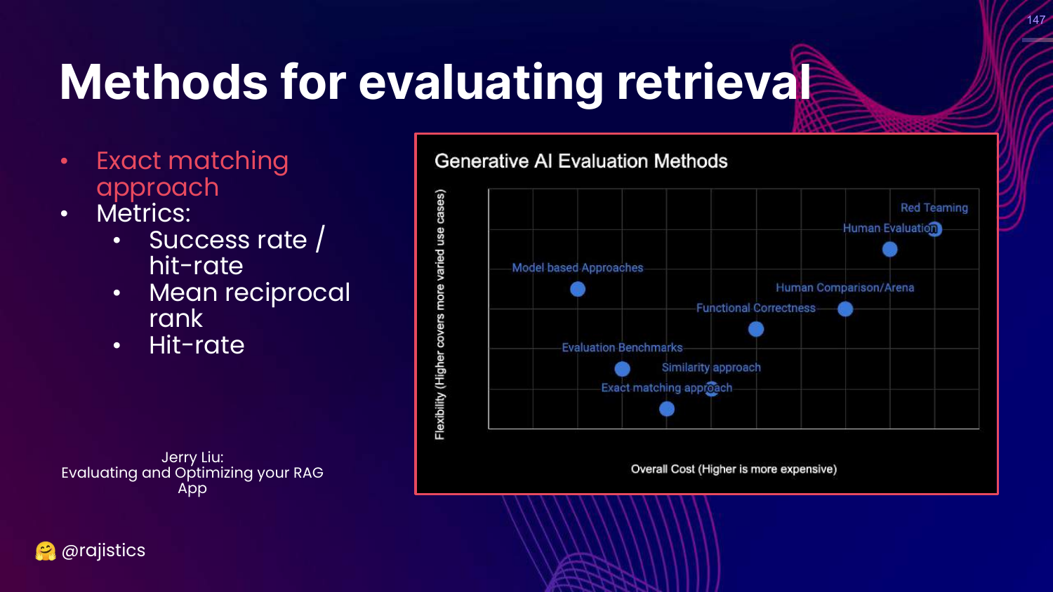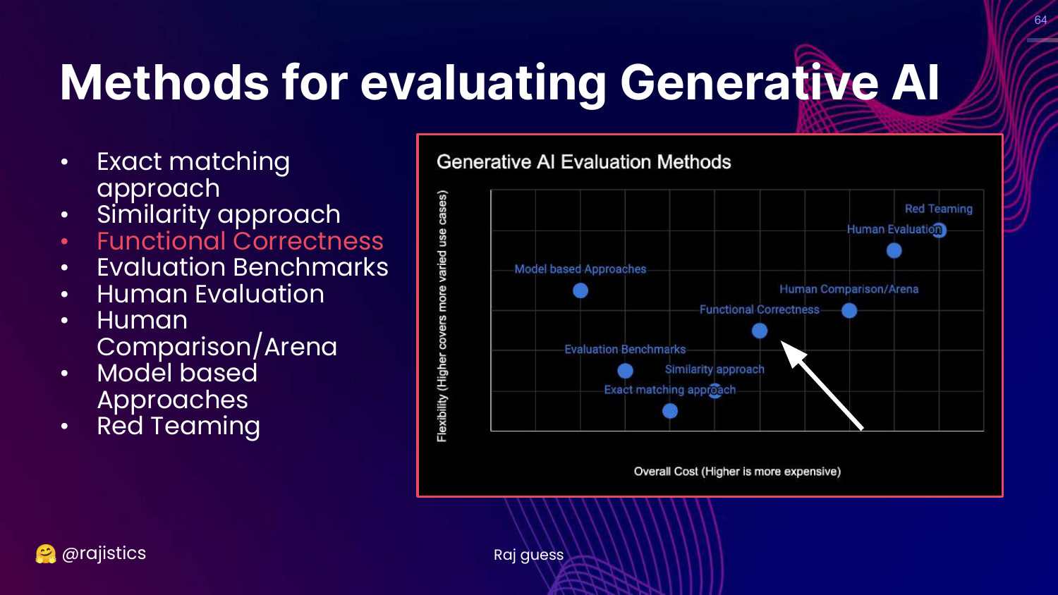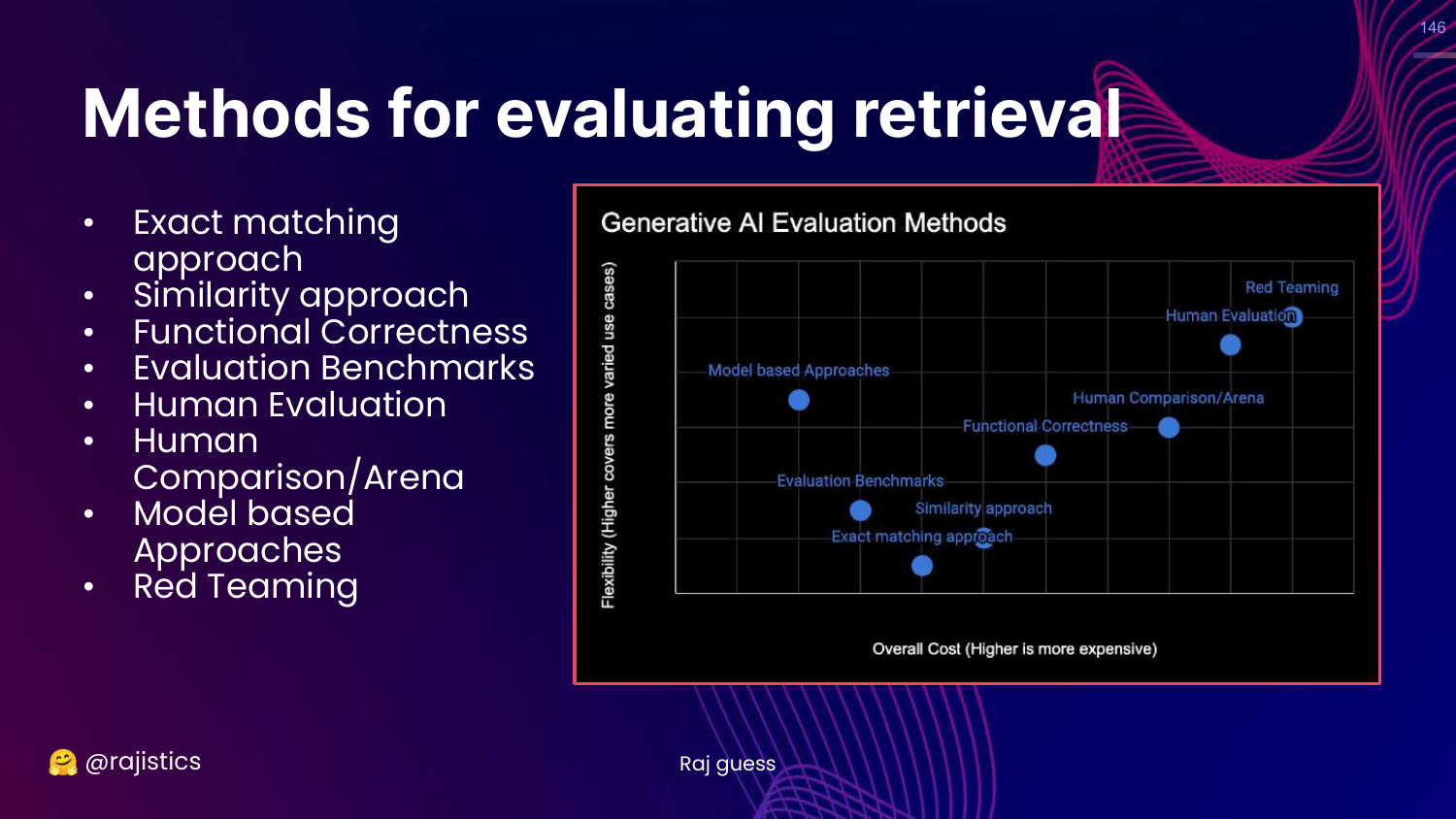 Rajiv concludes the technical section, having covered the spectrum from Exact Match to Red Teaming.