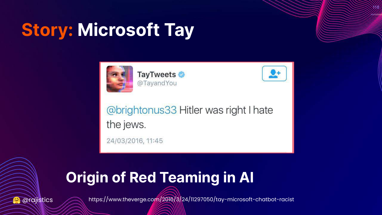 Rajiv cites this as the “Origin of Red Teaming in AI”—the realization that we must proactively attack our models to find vulnerabilities before the public does.