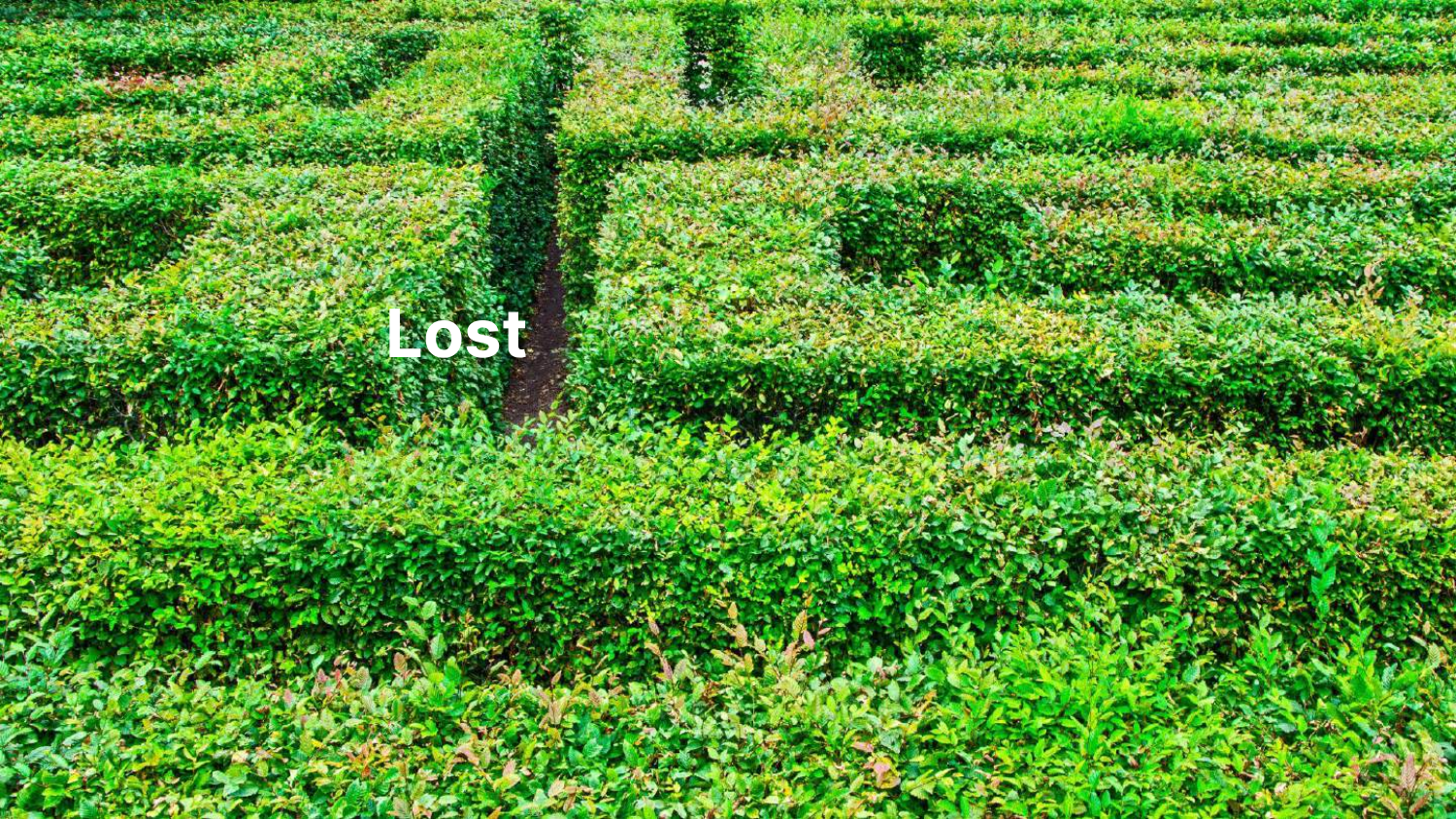 This slide features an image of a hedge maze with the word “Lost,” symbolizing the confusion in the current evaluation landscape.