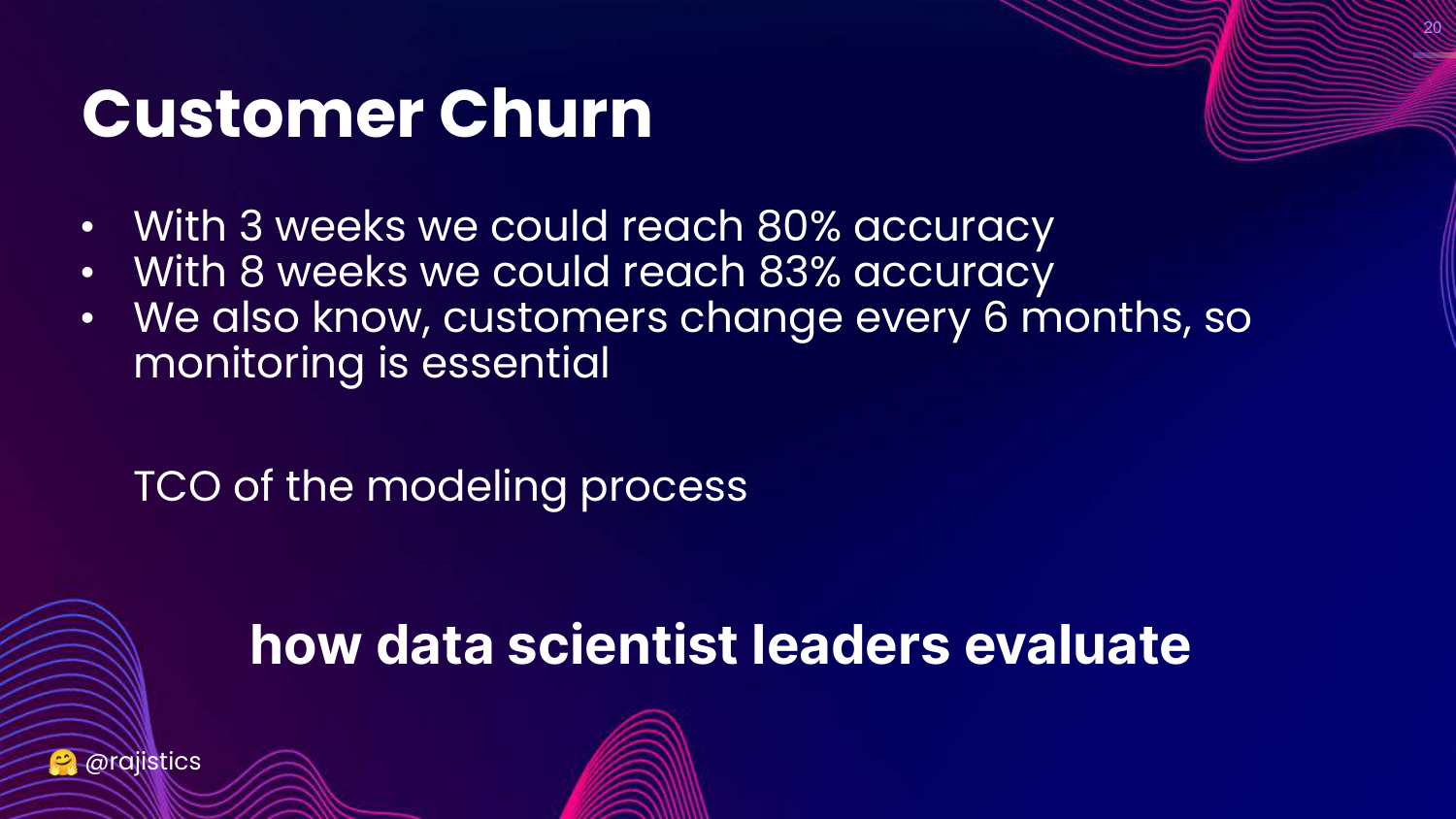 A leader asks: “Is it worth spending 5 more weeks to get 3% more accuracy?” and “How will we monitor this when customer behavior changes?”