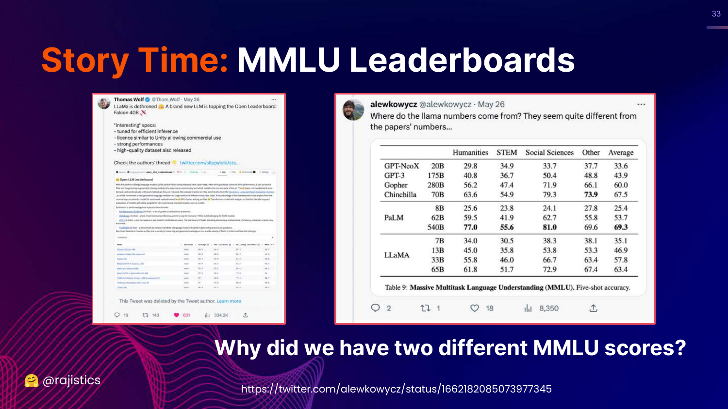 However, Rajiv warns about Data Leakage. Because LLMs are trained on the internet, they may have already seen the test sets of standard benchmarks.