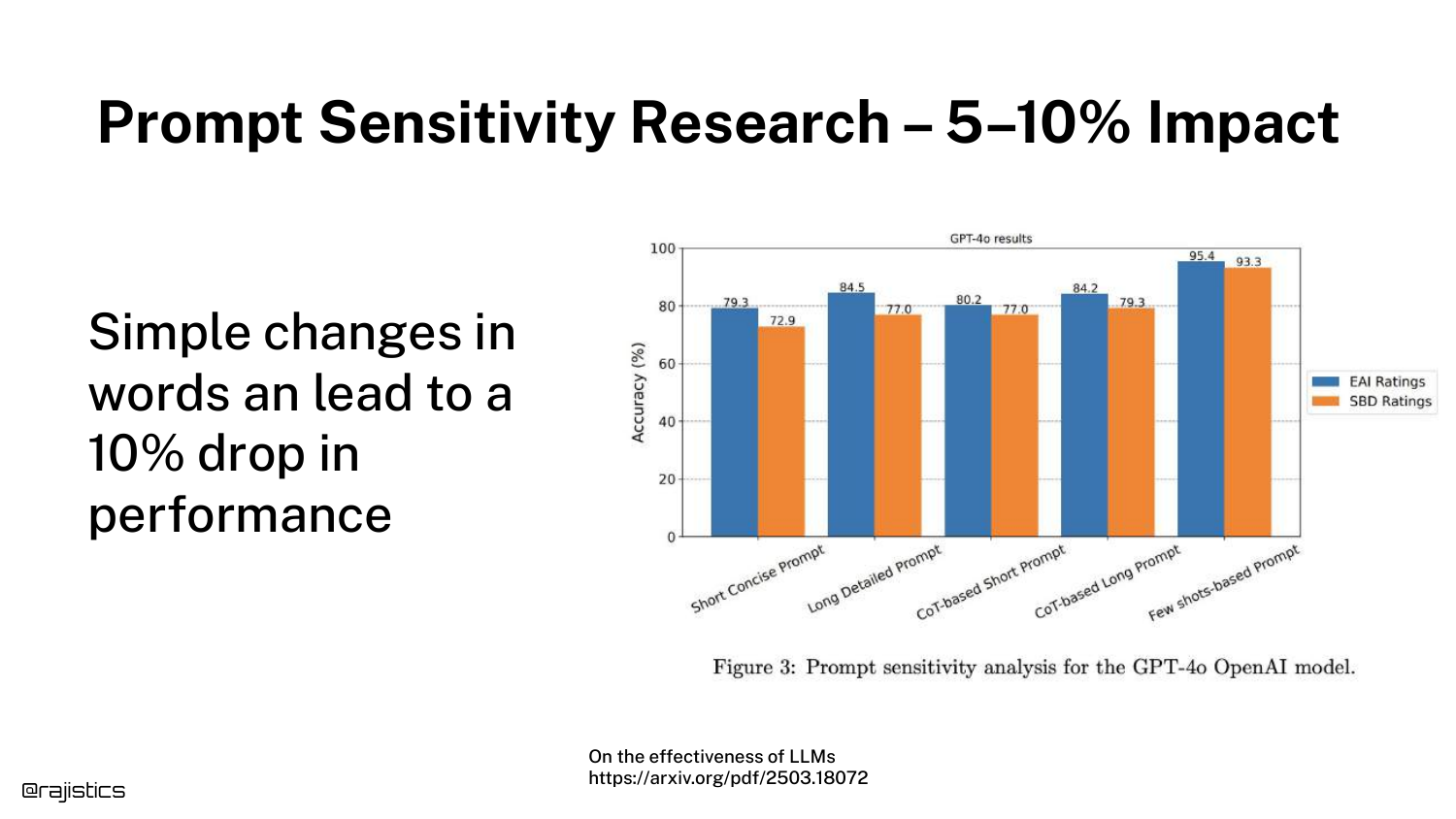 This counters the assumption that newer, larger models have “solved” prompt sensitivity. It remains a persistent variable that evaluators must control for.