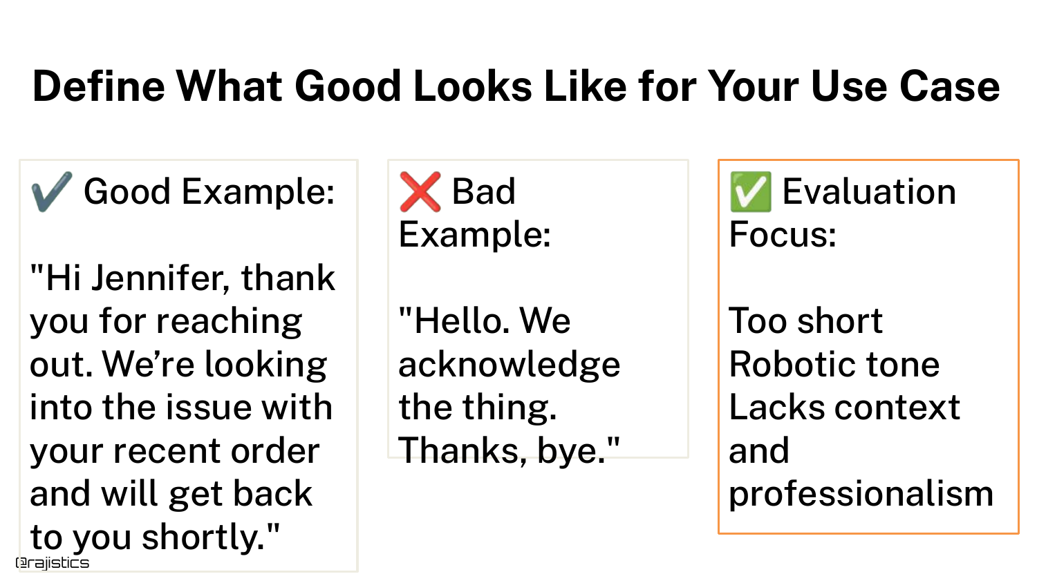 This is a critical definition for the workshop. To “tame” GenAI, you must build a dataset that reflects your specific customer queries and define success metrics that matter to your business logic, rather than relying on generic academic tests.