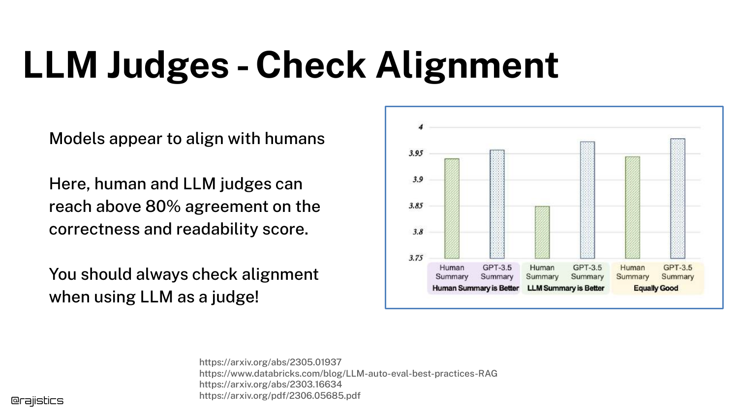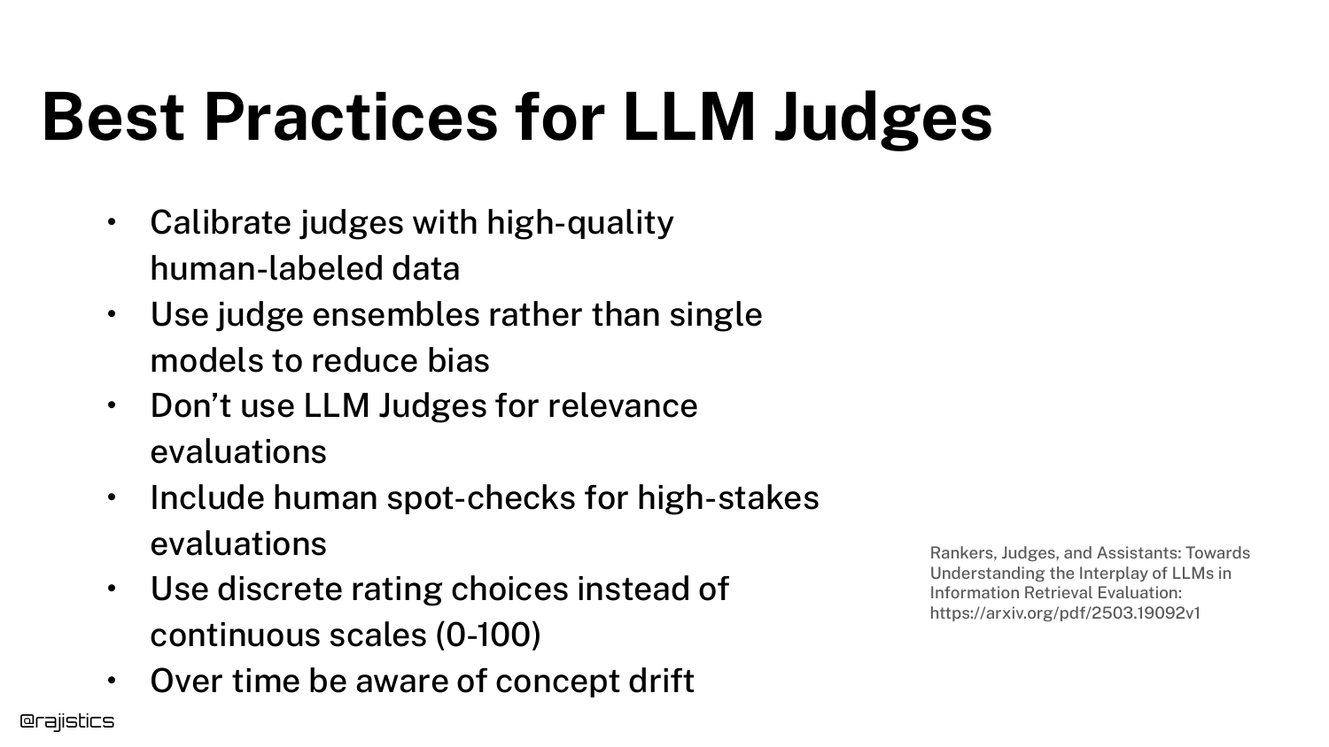 Rajiv suggests asking the LLM Judge for Explanations. Don’t just ask for a score; ask for “one sentence explaining why.”