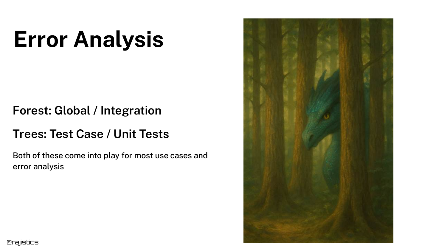 An analogy helps structure the analysis: Forest (Global/Integration) vs. Trees (Test Case/Unit Tests).