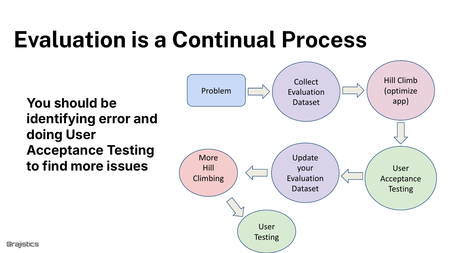 Crucially, UAT is your holdout set. Since you don’t have a traditional test set in GenAI, your real users act as the final validation layer.