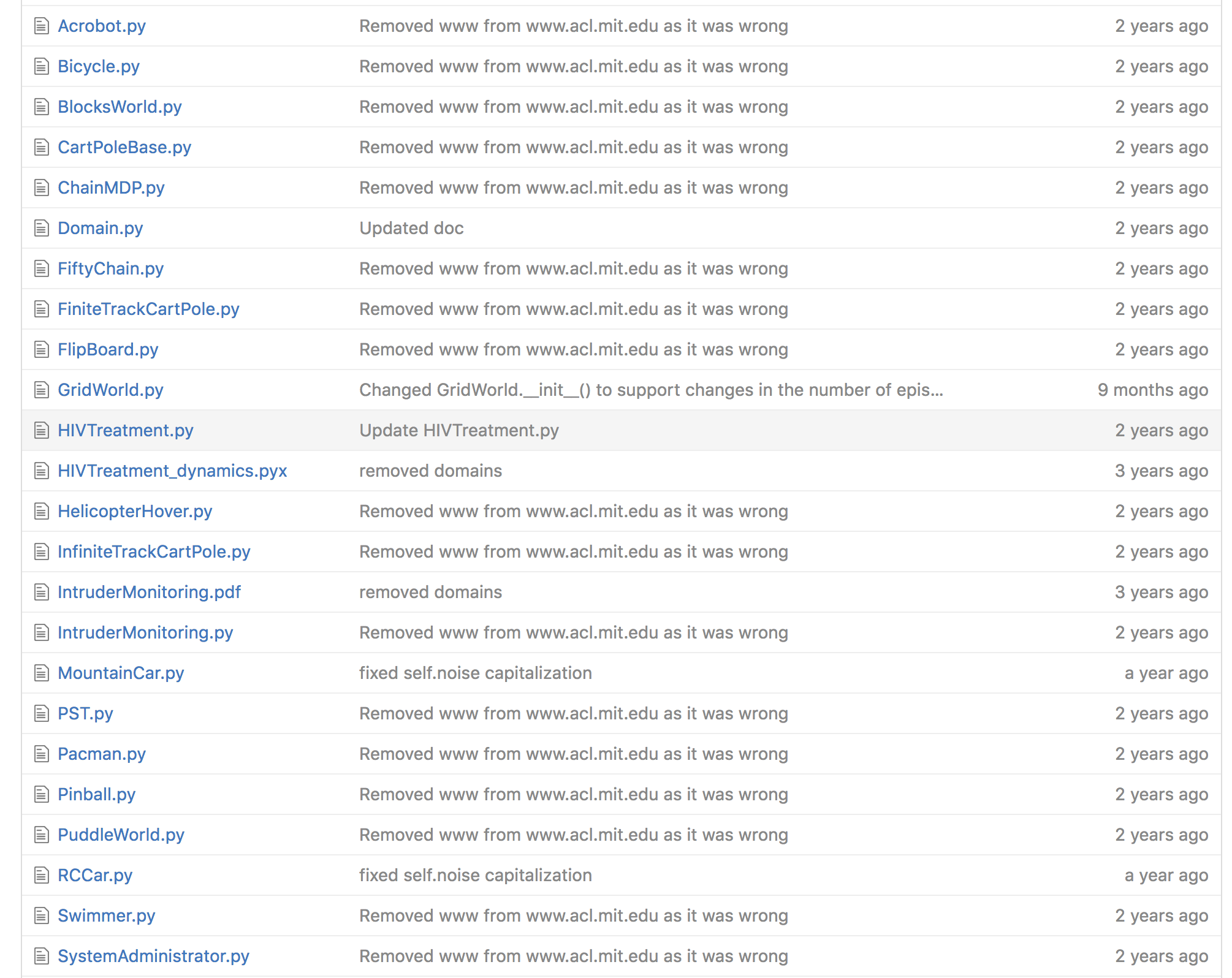 To begin, grab the repo for the OpenAI gym. Inside the repo, navigate to gym/envs/classic_controlwhere you will see the scripts that define the class control environments. If you open one of the scripts, you will see a heading on the top that says: