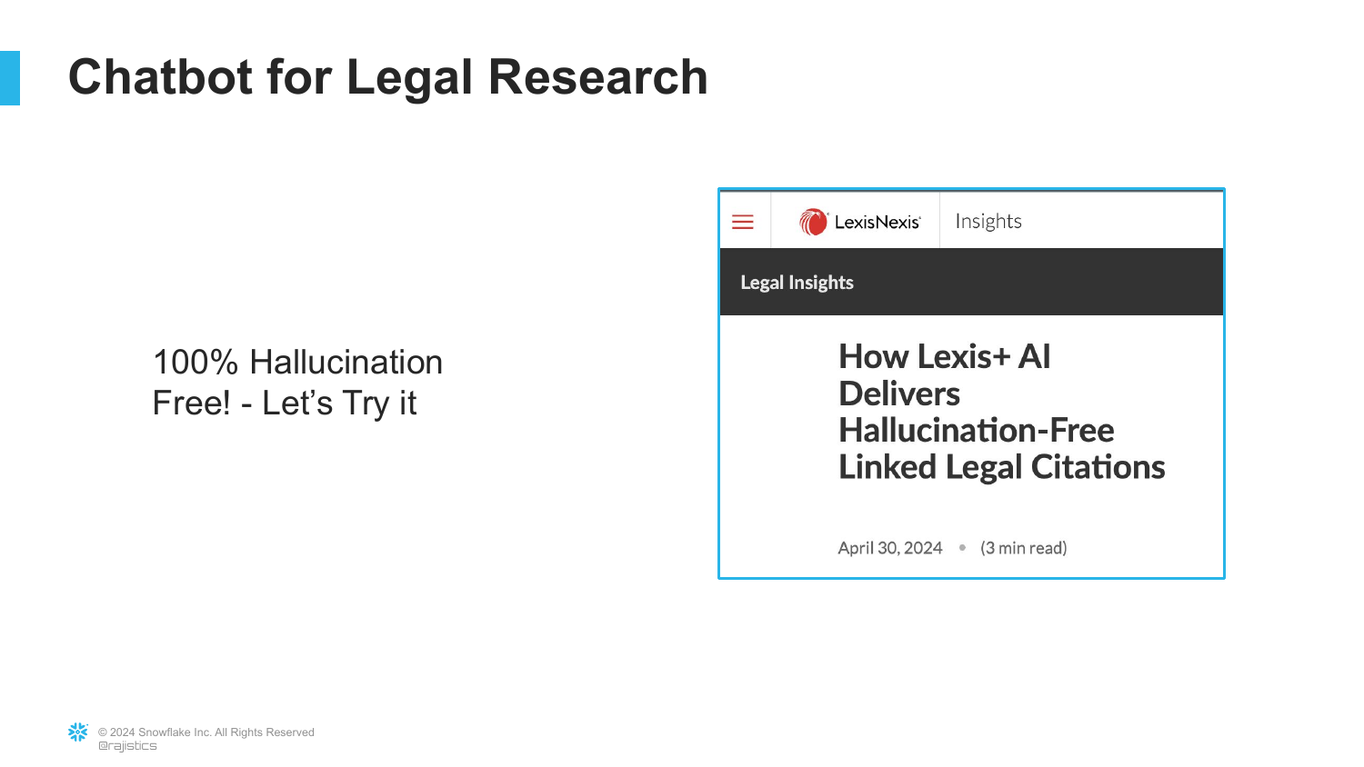 The firm decides to use professional tools. They turn to Lexis+ AI, a commercial product that promises “Hallucination-Free Linked Legal Citations.” This tool uses the RAG approach discussed earlier, retrieving from a database of real case law.