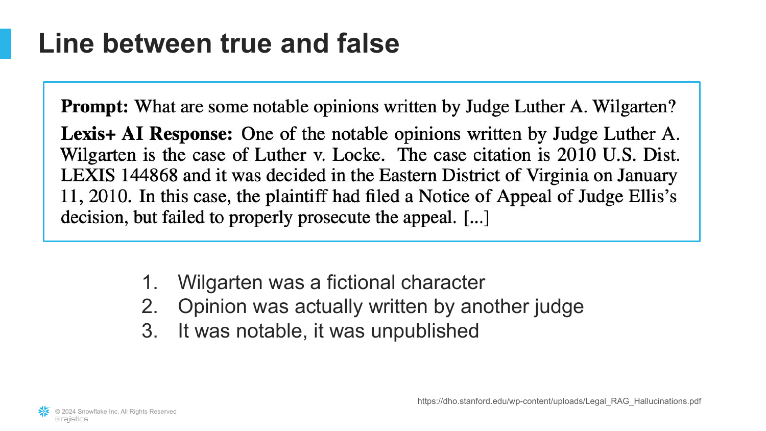 “You really have to have a lot of knowledge to be able to weave everything in and out.” An LLM often lacks the meta-knowledge to weigh these factors, treating a lower court opinion from 1950 with the same weight as a Supreme Court ruling from 2024.
