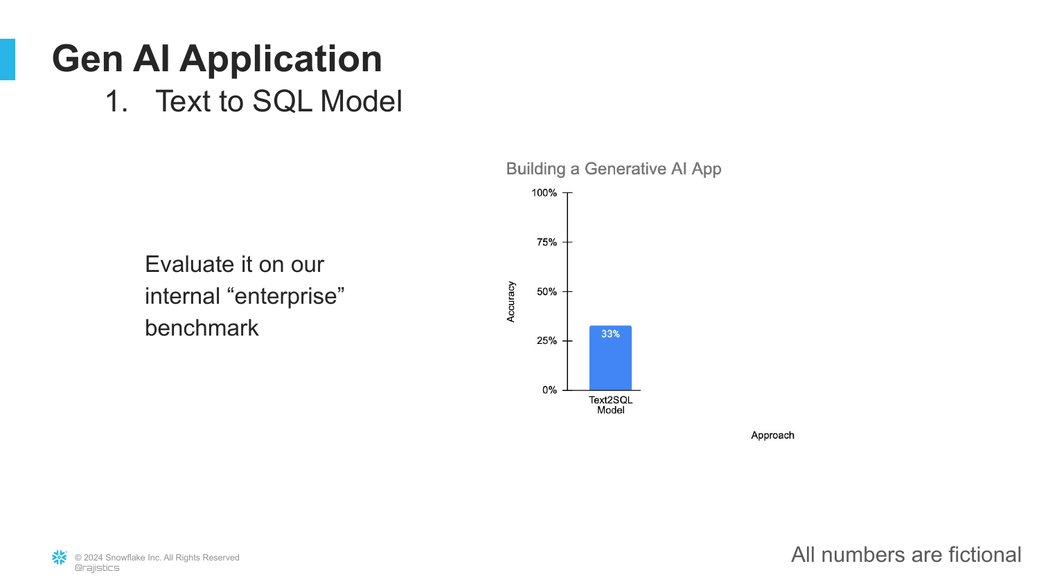 After setting up the evaluation pipeline and creating an internal enterprise benchmark (not a public dataset), the initial results are poor: only 33% accuracy.