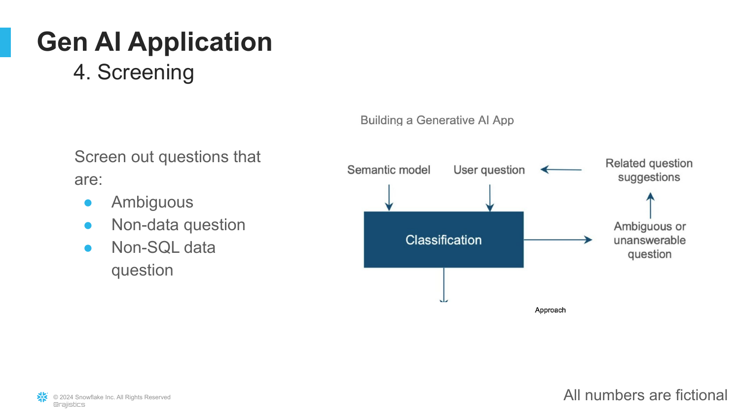 Improving the input data is just as important as improving the model. The engineer adds a Screening layer to filter out questions that are ambiguous or irrelevant (non-SQL questions).