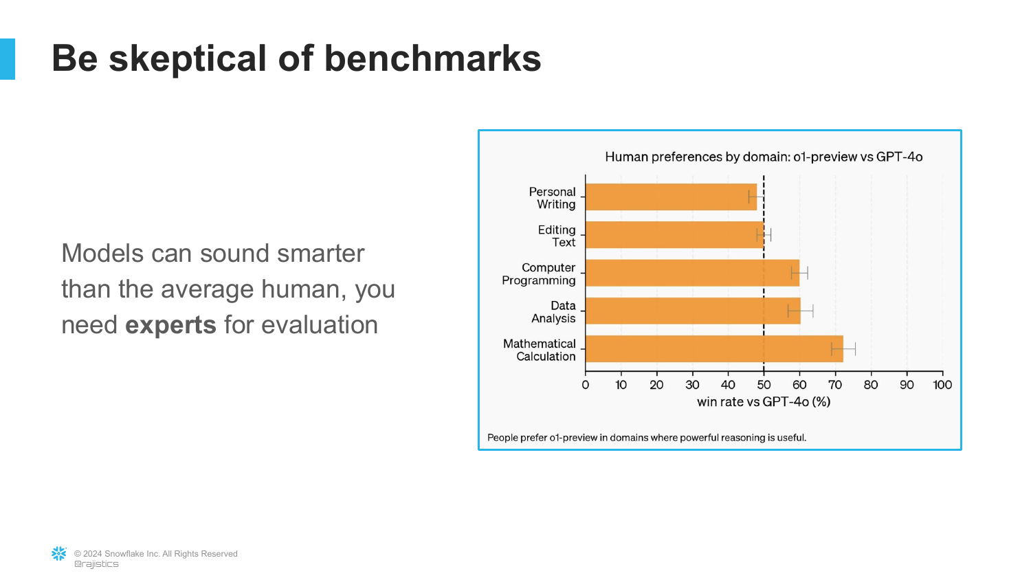 “You’re going to have to have an expert to be able to tell when this models are going off the rails… because the Baseline for these models is so good.” Just as legal experts were needed for RAG, domain experts are needed to verify AI reasoning.