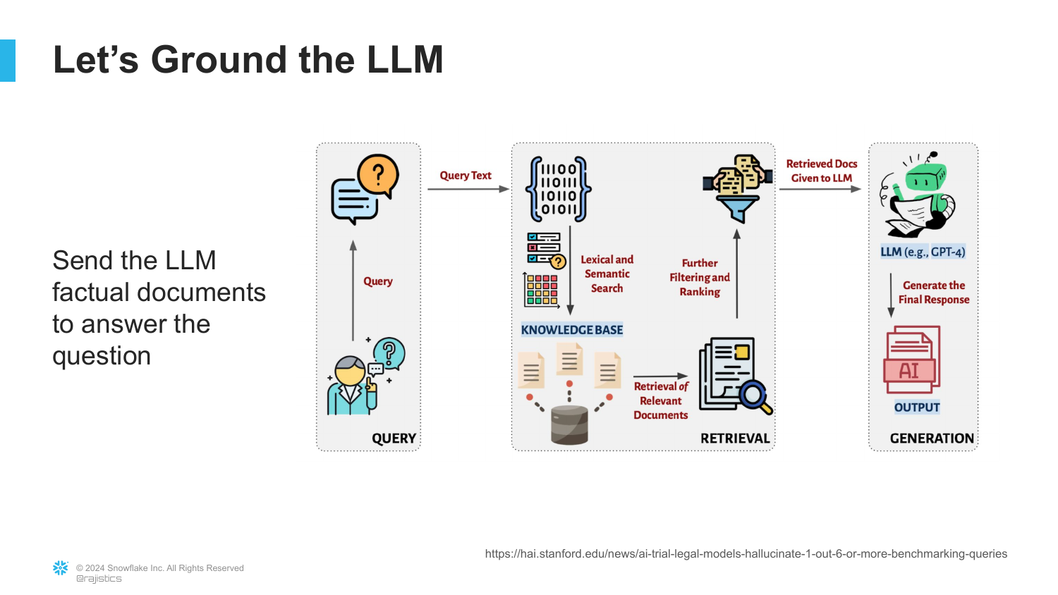 The core idea is simple: “We’re going to ground it with information so it uses that information in answering the question.” This technique attempts to bridge the gap between the model’s linguistic capabilities and the need for factual accuracy in enterprise applications.
