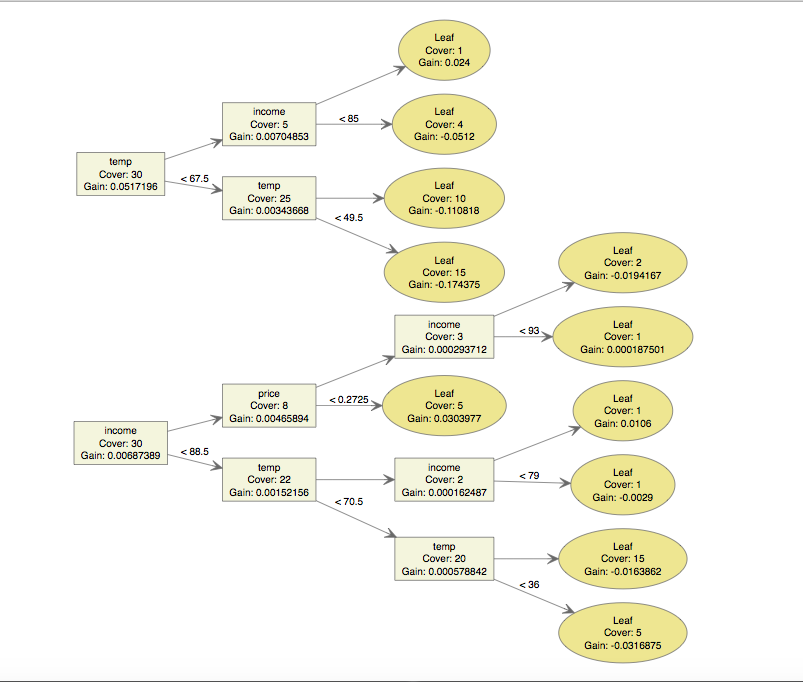 xgb.plot.tree(feature_names = names((Icecream[,-1])), model = bst)